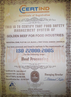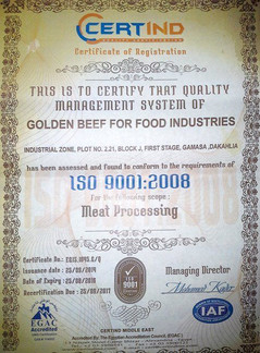 كللت شركة جولدن بيف مجهودها وسعيها الدائم للتطوير بحصولها على شهادات الأيزو 9001 وايضا شهادة الجودة 22001 لسنة 2015 الخاصتين بسلامة وجودة المنتجات لأنها المعيار الدولى الأكثر إنتشارا فى العالم….مما يكفل ذلك إتباع شركة جولدن بيف منهجية راسخة لتحسين الجودة دائما فى منتجاتها وعملياتها الإنتاجية.